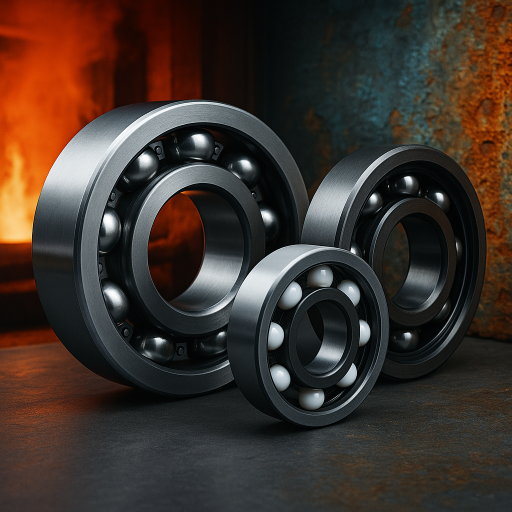 Выше +300°C: Область применения полнокерамических подшипников (Si3N4) и подшипников с специальными стальными сплавами и термостойкими покрытиями. Смазка либо выгорает (работа "всухую" с ограниченным ресурсом), либо используются твердые смазки. Пример высокотемпературного решения: Полнокерамический подшипник Si3N4 6208.